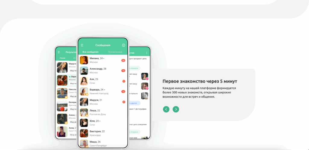 - Мята ★★★☆☆ – Универсальный сервис для поиска партнеров с разными целями знакомства