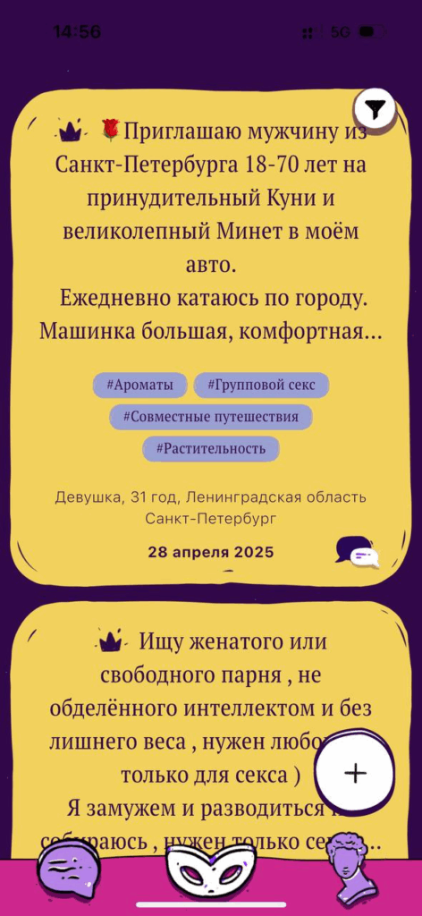 «Без комплексов» разрушает все табу в мире онлайн-знакомств! Здесь царят предельная честность и отсутствие лицемерия. Пользователи открыто заявляют о своих желаниях без социальных масок.