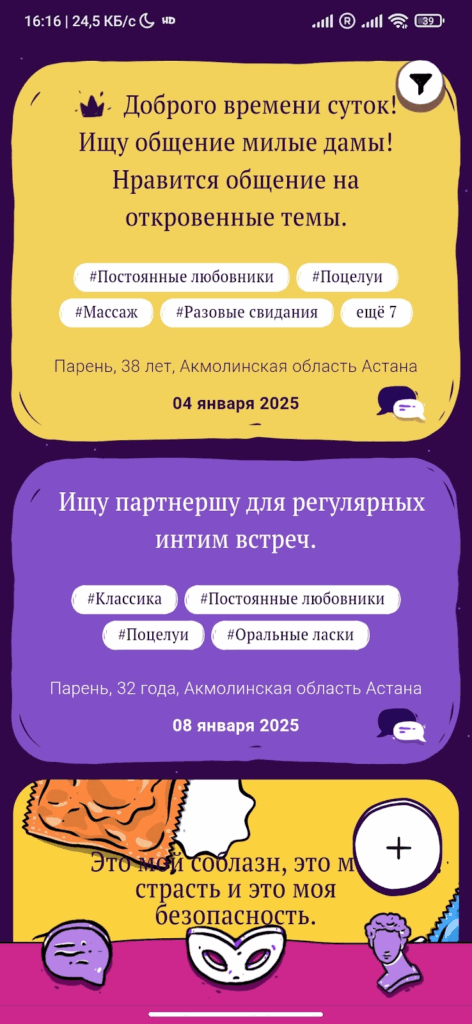 Несмотря на строгую модерацию, сервис допускает использование псевдонимов и выборочных фотографий, что делает его интересным вариантом для тех, кто ищет особые форматы отношений, сохраняя при этом приватность лучше, чем агент под прикрытием.