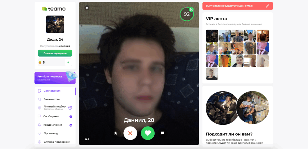 Teamo идеально подходит для тех, кто ценит конфиденциальность, но стремится к серьезным отношениям. Платформа позволяет оставаться инкогнито до момента, пока не найдется действительно подходящий человек — как на маскараде, где маски снимают только при встрече родственных душ.