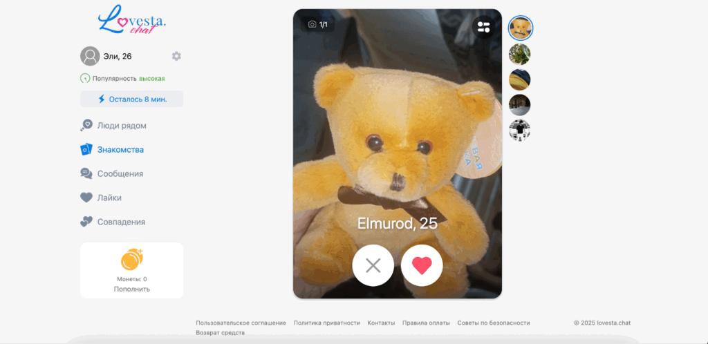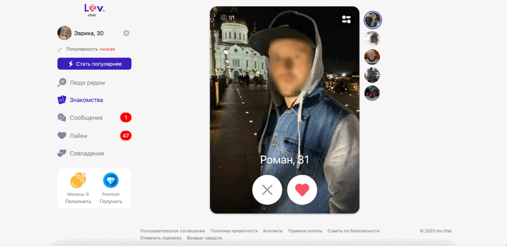 LoveChat популярен не только в Красноярске, но и во многих городах Сибири. Если хотите расширить географию поиска, этот сервис подойдёт отлично. Регистрация занимает пару минут, после чего можно начать искать собеседников в родном городе или за его пределами. Однако для полноценного использования функций потребуется подписка. Среди бесплатных сайтов знакомств в Красноярске LoveChat привлекает именно широтой аудитории, несмотря на устаревший внешний вид.