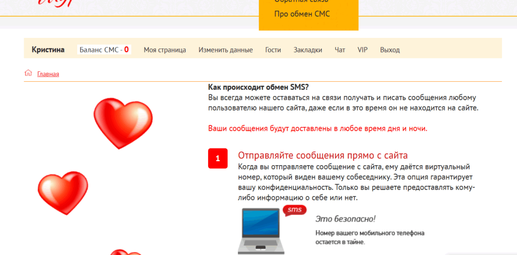 Только первое сообщение бесплатно. Дальше каждая СМС стоит около 60 рублей, что очень дорого по сравнению с другими сайтами знакомств.