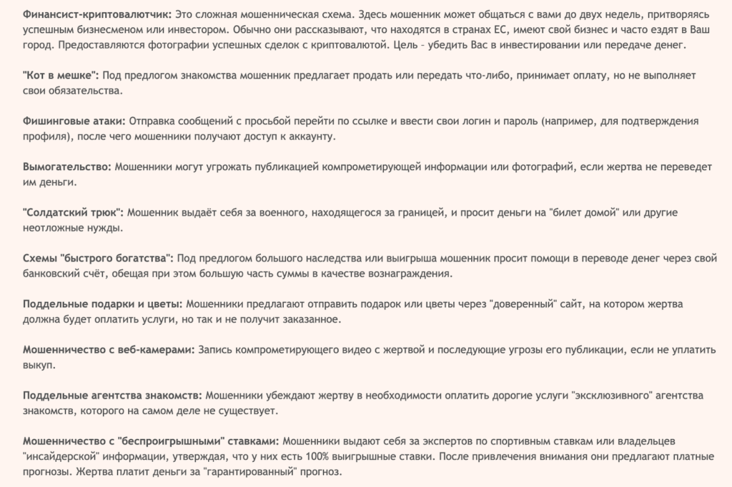 ⚠️ Не выдавай личную информацию: адрес, работу, документы, пароли