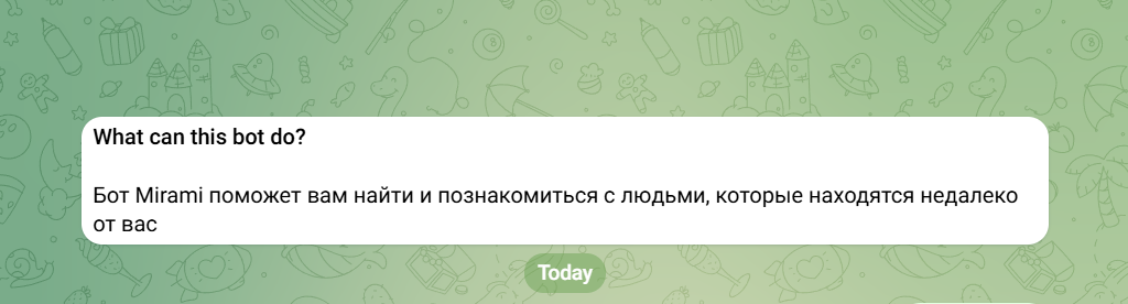 | MiramiBot | ⭐⭐⭐ | Casual dating | Геолокация | Бесплатно |